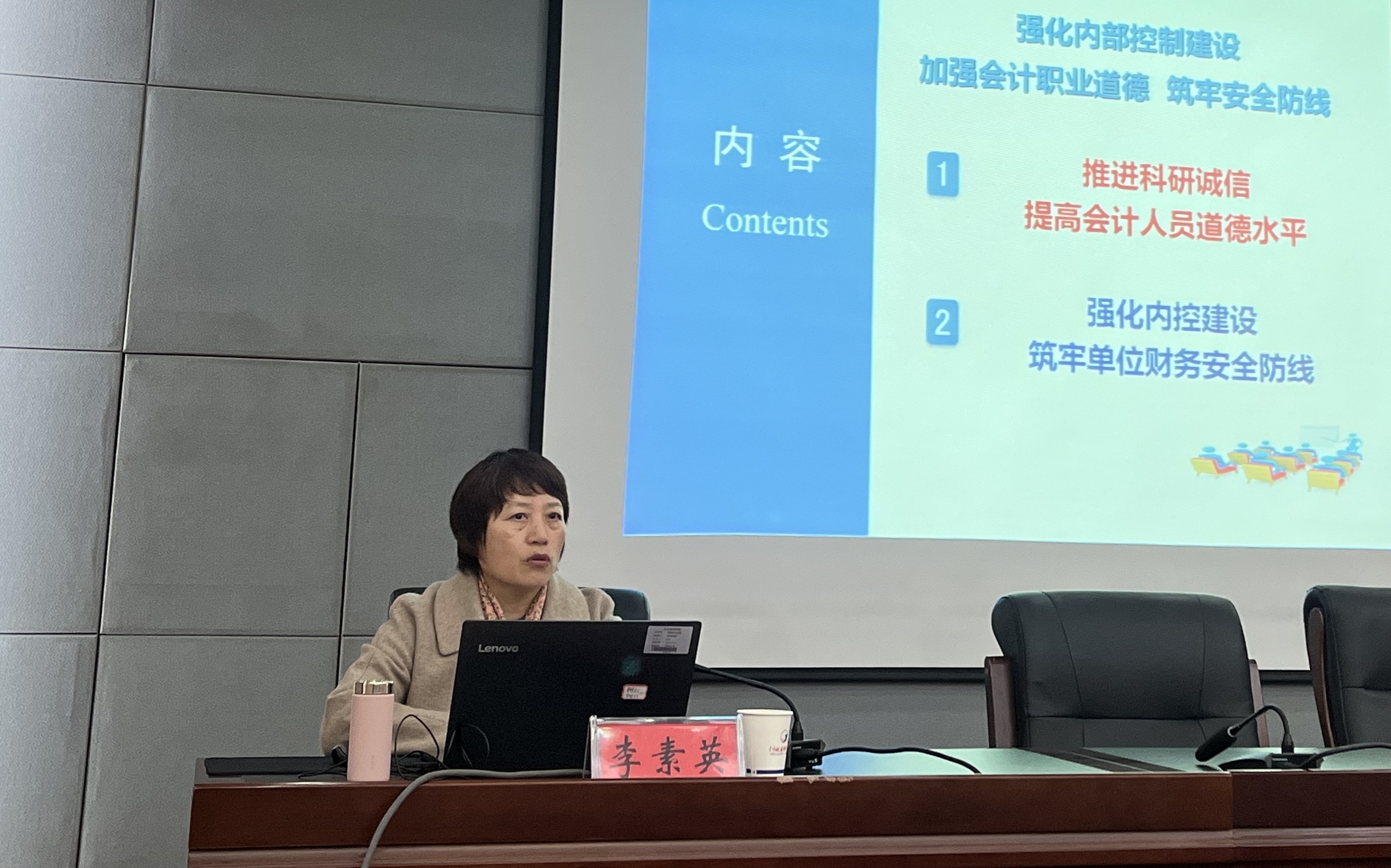 此次培训特别邀请河北省学术类高端会计人才、博士生导师、石家庄铁路职业技术学院院长李素英教授进行讲授。李教授以扎实的理论、生动的案例,就如何完善内控管理,健全“硬制度”,提升职业素养,强化“软约束”,实现经费管理的“实目标”,筑牢我院财政经费的安全防线,为与会人员上了一堂生动的培训课。