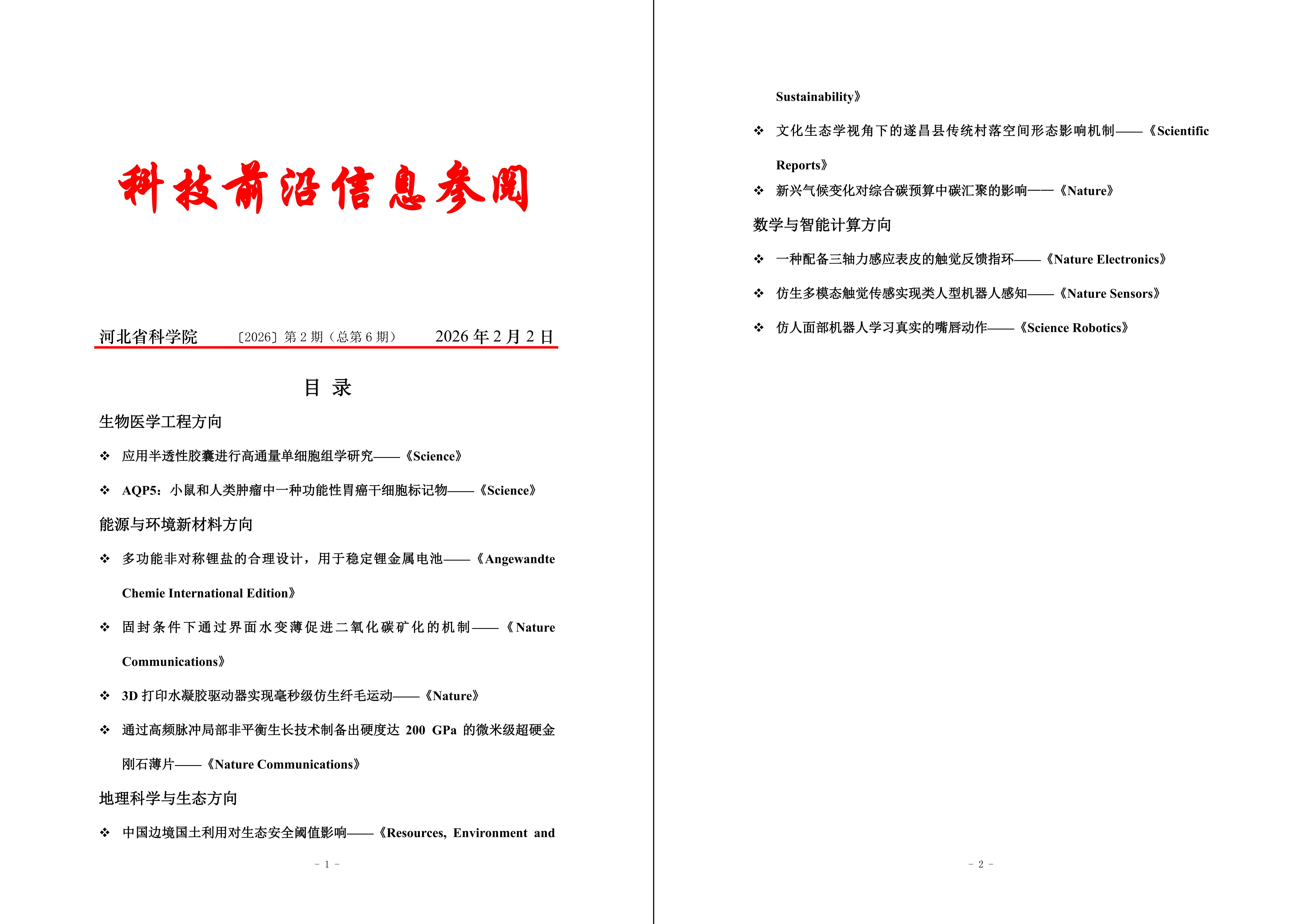 科技前沿信息参阅(2026年第2期)